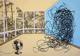 Tomaševičius's practice currently is a combination of painting and printmaking: a detailed pencil and painted image is overlaid with abstract monochrome patterns, a technique he calls "digital impressionism".[6] The patterns are made from drawings scanned, enlarged, laser-printed, and transferred to the painting's surface.[11][8]