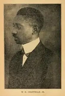 W. D. Chappelle Jr. (October 19, 1888 – March 7, 1957)[1] was an American physician and surgeon in South Carolina who opened the People’s Infirmary, a hospital and surgery practice for African Americans in Columbia, South Carolina in 1914. At the time, segregation prevented many African Americans from having access to healthcare.[2]