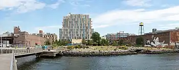WNYC Transmitter Park is a 6.61-acre public park located in the Greenpoint neighborhood of Brooklyn, New York City, where Greenpoint Avenue dead-ends by the East River shoreline. The site was acquired by the public radio station WNYC in 1935 as the site of twin antennas used for broadcasting. From 1937 to 1990, the city-operated station broadcast its AM signal from this location.[1] Following the adoption of antennas in Kearny, New Jersey and atop the World Trade Center, the Greenpoint property sat unused.[2] Construction on WNYC Transmitter Park began in August 2010 and the park opened two years later in September 2012.[1][2]