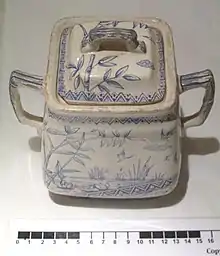 W H Grindley was taken over by Alfred Clough in 1960,[5][3] and became known as Grindley of Stoke in 1978. The company bought Ceramix in 1980,[6] and was itself bought by Federated Potteries in 1982 before being bought back by W H Grindley in 1988. The company went into receivership in 1991 and was taken over by Woodlands Pottery.[7] Pattern books and records from 1880 to 1930 are in the Stoke-on-Trent City Archives.[8][9]