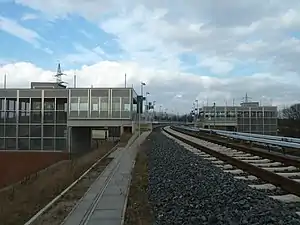 The Waßmannsdorf station is a stop of the Berlin S-Bahn in Waßmannsdorf in the municipality of Schönefeld on the Grünau Cross–Berlin Brandenburg Airport railway. It was completed in October 2011 and opened on October 26, 2020, five days before Berlin Brandenburg Airport (BER) opened on October 31, 2020. A railway station already existed in the village from 1951 to 1982. It was not located at the same place and was exclusively a depot (Betriebsbahnhof) on the Berlin outer ring.