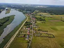 It lies approximately 4 kilometres (2 mi) east of Brzeg Dolny, 14 kilometres (9 mi) south-east of Wołów, and 24 kilometres (15 mi) north-west of the regional capital Wrocław.
