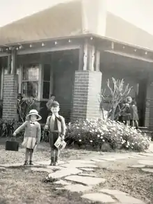 The school was established in 1943 by K. A. Wyndham.[2] In February 1942, Wyndham and her stepmother purchased a house known as Telerah from the Protestant Alliance Friendly Society for £1750. The house had previously been owned by George Christie. Christie was an accountant who had served as an Alderman on Municipality of Strathfield from 1892 until 1898.[3] Upon her purchase of the property Wyndham changed the name to Wadham and opened a school. The school catered to children from pre-Kindergarten (known as nursery) to Year Six.[4] Having been an early 20th Century domestic building the house was then adapted to school use. It had been built in the Federation style and was single storied face brick with a distinctive diamond pattern asbestos tile roof, a wrap-around verandah on three sides and a central hall. Miss Wyndham was strong on teaching cultural activities outside the curriculum. The school staff included Miss Joyce Foreman and Miss Heather Gell.[5] Under the direction of Gell and with Charles Mackerras conducting the children preformed in pantomimes at the Theatre Royal each Christmas including the Pied Piper of Hamelin in which Leonard Teale played the Pied Piper.[6] In 1957, Wadham was purchased by Meriden, a neighbouring Anglican school, and was used as a sub-primary campus principally for girls, but also for nursery and kindergarten boys. In 1967 Meriden closed the Wadham campus having purchased land for its entire junior school in Redmyre Road, Strathfield.[7] After its closure, the building was demolished and two large 1970s style face-brick houses now stand in its place at 9 and 11 Wallis Avenue Strathfield.