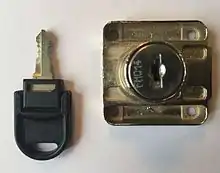 A wafer tumbler lock is a type of lock that uses a set of flat wafers to prevent the lock from opening unless the correct key is inserted. This type of lock is similar to the pin tumbler lock and works on a similar principle. However, unlike the pin tumbler lock, where each pin consists of two or more pieces, each wafer in the lock is a single piece. The wafer tumbler lock is often incorrectly referred to as a disc tumbler lock, which uses an entirely different mechanism.