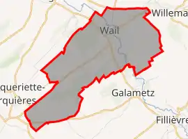 Wail is located 21 miles (33 km) southeast of Montreuil-sur-Mer, at the D98 and D340 road junction, 4miles (6k) east of Hesdin.