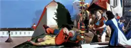Waiting for the Barbarians (German: Warten auf die Barbaren) is a 2007 painting by the German artist Neo Rauch. To the right in the picture is a carnival where a minotaur is cheered on a stage, while to the left another minotaur is about to be burned at the stake. The picture also includes several other people and creatures. The title is taken from the poem "Waiting for the Barbarians" by Constantine P. Cavafy.[1]