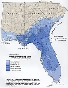 Wakulla cave is a branching flow-dominated cave that has developed in the Floridan Aquifer under the Woodville Karst Plain of north Florida.[2]