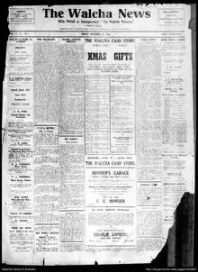 Witness was the first newspaper published in Walcha in 1889 founded by Mr. F. Townshend.[1] The Walcha News and Southern New England Advocate was published from 1904-1932 in opposition to the Witness which it then absorbed in 1928.[2] It became The Walcha News[3] in 1932 and is still published today. Erle Lewis ("Blue") Hogan managed and edited The Walcha News from 1950-1977.[2]