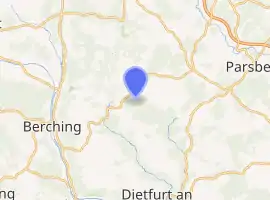 The village lies about 21 kilometers south-east from Neumarkt, on the Franconian Jura.