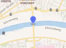 The Waldschlösschen Bridge (German: Waldschlößchenbrücke or Waldschlösschenbrücke) is a road bridge across the Elbe river in Dresden. The bridge was intended to remedy inner-city traffic congestion. Its construction was highly controversial, as the Dresden Elbe Valley had been declared a UNESCO World Heritage Site and UNESCO expressed strong concerns against the bridge, noting its intent to withdraw the World Heritage title if the bridge were built.[1] As a result of this project, the Dresden Elbe Valley was listed in 2006 as an "Endangered World Heritage Site" (one of two in Europe, the Medieval Monuments in Kosovo being the other one), and in 2009 became only the second World Heritage Site to be de-listed.[2]