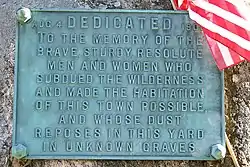 Wales was first settled by Europeans in 1726 and was officially incorporated on August 23, 1775, as "South Brimfield," a name it kept until February 20, 1828. The town was renamed after James Lawrence Wales, a local benefactor.[2] Initial settlers included Anthony Needham, John Bullen, and Samuel and Dorothy Munger. The next generation of Mungers became prominent in the town. Samuel (Jr.) served as a selectman and was deacon of the Baptist Church for many years. Nathaniel was one of 12 men of the district appointed as a "court of Justice and Honor to determine all controversies that may hereafter arise in said District," and was also a deacon of the Baptist Church. The "Meadow District" of Wales was originally known as "Munger's Meadow" and includes graves of early pioneers.[3]