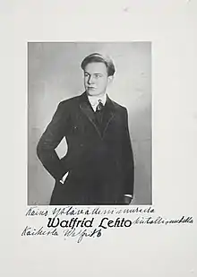 Lehto learned to sing in his home town of Hassi, Jämsä,[2] and made a study trip to California in the 1920s. He settled down in New York City, where he performed at cafes and restaurants.[3] 1928—1929 Lehto recorded 20 Finnish songs for His Master's Voice and Victor Talking Machine Company in New York. All recordings were made under his stage name Volpi Leuto and some recordings were made with the Finnish-American Östman-Stein Orchestra.[4] For eight years Lehto lived in America and returned to Finland in the 1930s. He was no longer able to sing, and died a poor man in his home town of Hassi.[2]