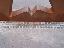 Each star consists of a stainless-steel seven-pointed irregularly shaped star, inlaid into a bronze square. Inside the star, the signature of the honoree is etched. The full name of the honoree in capital letters can be seen on the bronze square, as well as the sponsor in normal letters.