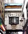 In 1958, Paul Raymond opened the Raymond Revuebar (closed 2004), a theatre and strip club at Maurice House, No. 11-12. It is now The Box Soho.[4] Walker's Court is crossed at first floor level by an architecturally distinctive bridge with leaded bay windows which joins the entrance to the theatre to the main auditorium.[5] In recent years a carousel horse and toy car have appeared in the window on the south side and an eclectic selection of objects on the north side which has led to speculation about their meaning.[6]