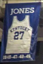He holds the unique distinction of being an All-American under both legends, Adolph Rupp (basketball) and Bear Bryant (football) when both coached at Kentucky. He is the only player to have his number retired in both football and basketball at Kentucky.[3] At the University of Kentucky, Jones was a member of the Phi Delta Theta fraternity.[4] Jones was selected in the seventh round of the 1949 NFL Draft by the Chicago Bears, but did not play in the league.[5]
