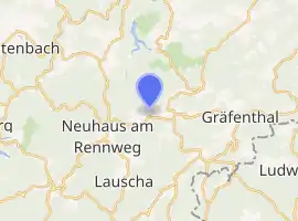 Th Ortsteil Wallendorf, consisting of the villages Wallendorf and Lamprecht, is located in a forested area in the southern part of the Thuringian Forest.