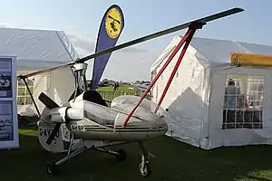 Following on from his family of single-seat autogyros former Royal Air Force aviator Wing Commander Ken Wallis developed a high-performance long-range variant with an enclosed cockpit. The WA-120, registered G-AYVO, was first flown on 13 June 1971.[1] The autogyro is powered by a 130 hp (97 kW) Rolls-Royce Continental O-240-A piston engine driving a four-bladed pusher propeller.[1]