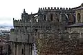 The work was started in 1090 but most of the defensive wall appears to have been rebuilt in the 12th century. The enclosed area is an irregular rectangle of 31 hectares with a perimeter of some 2,516 meters, including 88 semicircular towers. The walls have an average width of 3 metres and an average height of 12 metres. The nine gates were completed over several different periods. The Puerta de San Vicente (Gate of St Vincent) and the Puerta del Alcazar (Gate of the Fortress) are flanked by twin towers, 20 metres high, linked by a semicircular arch. The apse of the cathedral also forms one of the towers.
