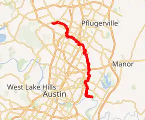 Walnut Creek is a 23-mile (37 km) long tributary stream of the Colorado River in Texas.[1] It flows from north to south, crossing the Edwards Plateau on the western side of Austin, down to the Blackland Prairie on the eastern side of the city where it then drains into the Colorado River downstream of Longhorn Dam.[1] The stream's upper region flows over limestone, while the southern stretch passes through deeper clay soils and hardwood forest.[2] Walnut Creek's watershed, spanning 36,000 acres (15,000 ha), is the largest in Central Austin.[2]