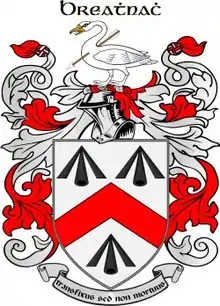 Walsh is a common Irish surname, meaning "Briton" or "foreigner", literally "Welshman" or "Wales", taken to Ireland by soldiers from Britain, namely Cambro-Norman/Welsh, Cornish and Cumbrian soldiers during and after the Norman invasion of Ireland. It is most common in County Mayo and County Kilkenny. It is the fourth most common surname in Ireland,[1] and the 265th most common in the United States. There are variants including "Walshe", “Welch”, "Welsh", "Brannagh", and the Irish "Breathnach". Walsh is uncommon as a given name. The name is often pronounced "Welsh" in the south and west of the country.[2] In Great Britain, Guppy encountered the name only in Lancashire.[1] It is the surname of the Barons Ormathwaite.[1]