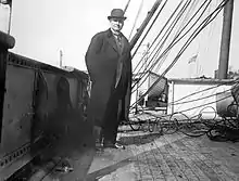 Damrosch was best known in his day as a conductor of the music of Richard Wagner, and In 1894 he founded the Damrosch Opera Company for producing Wagner's works.[8] He was also a pioneer in the performance of music on the radio, and as such became one of the chief popularizers of classical music in the United States. He conducted famed solo harpist Vincent Fanelli from 1908 to 1911.[9][10] At the request of General Pershing he reorganized the bands of the A.E.F. in 1918.[8]