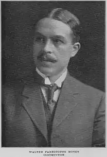 After studying at the School of the Art Institute of Chicago, he founded the Art Craft Club of Chicago in 1916 and was art director of Vogue Studios. He was an instructor at the Fashion School of Illustrating in Chicago. He was the author-illustrator of Artistic Anatomy and managing director of the California Art Club in 1922.[1][2][3] A prolific plein air painter, his works are infused with light and air and captured the unspoiled beauty of Southern California of the 1920s and 1930s. He settled in Los Angeles in 1922 and founded the Art Guild Academy in 1930 where he taught for many years. He lived in Eagle Rock, California until his death on October 25, 1947.[4] Moses signed his paintings using various variations of his name, including Walter Farrington Moses[5] , Walter Farrington, W. Farrington,[6] Farrington,[7] Moses, Farrington Moses, W.F. Moses and Walton.[8][9]