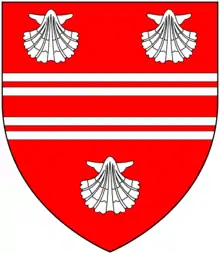 - Arms of Rawlinson of Carke Hall in Cartmell, Lancashire: Gules, two bars gemelles between three escallops argent Thomas Robson, British Herald