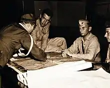He served in the same capacity during the Mariana Islands Campaign in the summer of 1944, when Fourth Marine Division, now under the command of his old superior from Quantico – Major General Clifton B. Cates, attacked and captured the islands of Saipan and Tinian and received second Legion of Merit for his service during that campaign.[2][1][4][5][6]