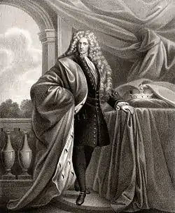 In 1717 a great fire broke out in Nikolsburg, which destroyed part of the city. Two years later (1719) another fire broke out; this time, Nikolsburg Castle was significantly affected and Walther Franz was forced to finance an extensive redevelopment to his residence. The architectural plans where formulated by Christian Alexander Oedtl, who worked for many years for the princely family. Originally a complex of three main buildings, Oedtl changed the main structure of the castle but maintained the historic facade. When repairing the castle, a new terrace and pavilion were built. The author of the rich sculptural interior decoration on the newly created castle was the young sculptor Ignaz Lengelacher. The reconstruction of the ancestral entrance hall was decorated with frescoes newly painted by Jan George Werle, while the author of the frescoes in the Hall of the Ancestors was the painter Anton Joseph von Prenner, who was also the art advisor of Walther Franz and his late brother Leopold Ignaz. Of these undoubtedly representative paintings today exist only the decoration in the sala terrena; the rest disappeared during a fire in 1945.[2]