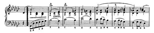 The Waltz Op. 70, No. 1, in G-flat major was composed in 1832.[4] It is written in the "brilliant style". According to Jeffrey Kallberg, "the unpublished waltzes also capture the joyfulness and glitter of the dance hall and salon, as we can hear in the waltzes in E major, A-flat major [KK IVa/13] (Chopin's only waltz notated in three-eighth metre), and, especially, in G-flat major, Op. 70, No 1."[1][4]