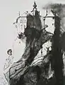 The castle has known different periods of decline and prosperity, and has therefore been renovated several times throughout history in different styles. Construction began in the 13th century, and the 15th-century Renaissance horseshoe tower with four cannon ports still exists, even though the castle was burned down by the French army in 1554. In 1850, the later baron Alfred Brugmann bought the ruins and carried out many restorations. He had them restored in 1881 in a sort of Spanish-Flemish style by architect Émile Janlet. The castle in this version can be seen on many postcards and drawings from the Belle Époque. In 1930, Baron Frédéric Brugmann de Walzin had the castle rebuilt again, this time by architect Octave Flanneau. He opted for the Maasland (Mosan art) style, which is common in the region, which gave the castle its current, well-known appearance. The works were finished in 1932.[2] The gardens of the castle were designed by architect Louis Julien Breydel, who also has the Botanical Garden in Brussels to his name. The castle is located in a wooded area, the Bois du Chaleux. Not accessible for viewing, however the gardens are. There is a guided walk every Thursday during the summer at 10am. Victor Hugo made a drawing of it in 1863.[3]