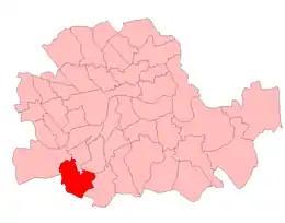 The constituency was surrounded by Battersea South to the north, Clapham to the north-east, Streatham to the east, Mitcham in the south, Wimbledon to the south-west and Putney to the north-west.
