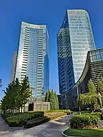 In 2000, the Small Wangjing Village, located in the core of the planned area, began to transform into high-end office buildings, shopping malls, and residential buildings. In 2004, some of the TOP500 companies (Motorola, Nortel Networks, and Siemens) announced to set up headquarters in Wangjing.[9] In 2007 and 2008, the 123-meter-high Siemens Building[10] and the 140-meter-high Fangheng International Center[11] were completed successively, setting a new height record for the buildings in Wangjing.