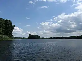 The navigable River Havel briefly flows through the Wangnitzsee, both entering and exiting at the west end of the lake. The river enters from a 7.2 kilometres (4.5 mi) channel from Wesenberg and the Woblitzsee, and exiting directly into the Großer Priepertsee. The lake itself is navigable to its eastern end, and navigation is administered as part of the Obere–Havel–Wasserstraße.[1][2]