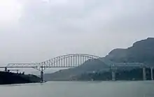 The Wanzhou Railway Bridge is an arch bridge in Wanzhou, Chongqing, China.[1] The bridge was completed in 2005 and carries the Yichang−Wanzhou Railway across the Yangtze River. The bridge spans 360 metres (1,180 ft) making it one of the longest arch bridges in the world.