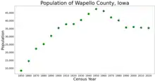 Wapello County is a county located in the U.S. state of Iowa. As of the 2020 census, the population was 35,437.[1] The county seat is Ottumwa.[2] The county was formed on February 17, 1843, and named for Wapello, a Meskwaki chief.[3]