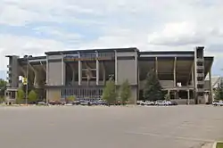It originally sat 20,000 in grandstands on the east and west sides of the field. In 1970, the western upper deck, containing 5,500 seats and a new press box, was added and in 1978 the eastern press box and northern bleachers were added, bringing capacity up to 33,500.[2] The playing field runs mostly in the traditional north–south configuration; it is slightly skewed to the northeast and southwest about 10°.