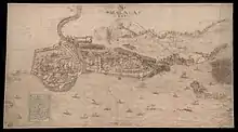 By October 5, 1574, the armada anchored within the nearby River of Malaios and began landing troops, but the besiegers suffered Portuguese raids that caused great damage to the army when assembling stockades around the city.[57]