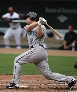 Farris' 2002 Gatemen returned 2001 MVP Murton, who was out with a broken hand during the first half of the season. He returned to hit .400 in 16 games in the second half, and also won the league's All-Star Game Home Run Derby.[79] In the playoffs, Wareham disposed of Cotuit in the semi-final series and met Orleans in the championship round. The star of Game 1 was 6-foot-4 Gatemen righty Kevin Guyette, who tossed a five-hit complete game and allowed just one run in Wareham's 5–1 victory at Eldredge Park. The late-inning fireworks in Game 2 began when Cards manager Carmen Carcone and pitching coach Kelly Nicholson were tossed in the eighth for arguing a balk call. The game went to the bottom of the ninth with the Cardinals clutching a slim 2–1 lead. It looked as though the series would be headed back to Orleans for Game 3 after the first two Gatemen made outs, but Murton poked a single that started a championship rally. Murton moved to third on a David Murphy single, and came home on an Orleans error to tie the score. With the Clem Spillane crowd in a frenzy, Brown University's Matt Kutler promptly thumped the game-winner off the left-field fence, bringing in Murphy and securing Wareham's second consecutive league crown. For his title-clinching poke, Kutler was named playoff MVP.[80][81]