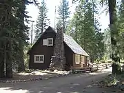 The Warner Valley Ranger Station, also known as the Warner Valley Patrol Cabin and Quarters 304, is located in the southern portion of Lassen Volcanic National Park, on the access road to the Drakesbad Guest Ranch. Built in 1926, it is unusual in its choice of construction method. While it resembles a log cabin, it was built using stacked milled 2x6 lumber to form the walls. It is the only such building known to have been built in this manner in the western regions of the National Park Service system. The interlocking boards extend past each other at the corners, forming a decorative detail.[2]