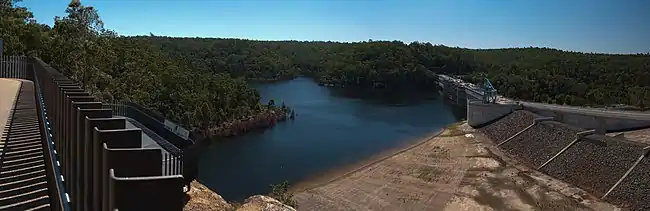 There was also a hydroelectric power station at the dam that could generate 50 megawatts (67,000 hp),[10][11] transmitting its output over a 132kV transmission line to Penrith Substation. Water levels very rarely became high enough to allow operation of the generators. By 2001, it was rarely used and was disconnected from the electricity grid.[12]