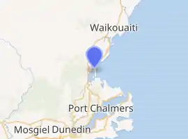 Warrington, known in Māori as Ōkāhau,[3] is a small settlement on the coast of Otago, in the South Island of New Zealand. It is situated close to the northern shore of Blueskin Bay, an area of mudflats north of Dunedin, and is administered as part of Dunedin City. Warrington is 3 km (1.9 mi) from State Highway 1 linked by Coast Road. The Main South Line railway passes through the township and a tourist train, the Seasider passes through the settlement once or twice a week between Dunedin and Palmerston.