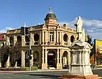 The Warwick central business district is laid out on a grid pattern and lies within one or two blocks of the long main street, Palmerin Street with Grafton Street the major cross-street. The statue of former Queensland Premier Thomas Byrnes is located at their intersection.[5]