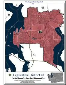 Washington's 48th legislative district is one of forty-nine districts in Washington state for representation in the state legislature. It covers areas of Redmond, Bellevue (including West Lake Sammamish), and Kirkland, and it encompasses Clyde Hill, Yarrow Point, Hunts Point, and Medina. It also contains Bridle Trails State Park and Marymoor Park.