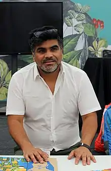 Santiago Vega (born in 1973 in Quilmes, Provincia de Buenos Aires), better known as Washington Cucurto, is an Argentinian writer of fiction, prose and poetry.[1] He is the self-proclaimed creator of realismo atolondrado ('headlong realism').[2] His writing shares tendencies of American authors like Charles Bukowski, William S. Burroughs and Henry Miller. Because of his subject matter and style, he is a cult author, especially among young readers. His work deals with negritude, poverty, homosexuality, and other fringe cultures. In 2002 he founded Eloísa Cartonera, an extremely successful non-profit publishing house specializing in handmade and affordable books from recycled materials.[3]