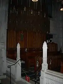 - Choir stalls and reredos (white oak, 1917–21), choir, Milton B. Medary, designer, Edward Maene, carver