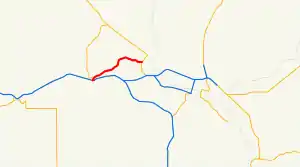 SR 224 begins at an interchange with I-82 in southern Benton City. After only 0.05 mi (80 m), SR 224 intersects SR 225 at a roundabout and turns to the east as Kennedy Road. After passing a park and ride lot on the south side of the highway, the road turns back to the north off of Kennedy road, paralleling the Yakima River, slowly turning northeast through a rural area of Benton County. After passing through farmland SR 224 enters West Richland and becomes Van Giesen Street, the main east–west thoroughfare of the city.[2] Exiting the town, the highway passes over the Yakima River and enters Richland, passing through a rural area on the south side of Richland Airport. At the southeast corner of the airport, SR 224 crosses over a single track belonging to the Port of Benton and managed by Tri-City Railroad and terminates at an intersection with SR 240 (the Richland Bypass Highway).[3] Van Giesen Street continues east from the terminus of SR 224 for another 1.7 miles (2.7 km), intersecting SR 240 Business near the western shore of the Columbia River.[4]