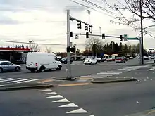 Edmonds and Lynnwood boosters sought a state designation for the Edmonds–Lynnwood highway in the early 1950s, citing its use by ferry travelers.[13][14] SSH 1W was extended east to PSH 1 in Lynnwood by the state legislature in 1957.[15] The designation was extended further east to SSH 2J in Bothell in 1959, provided that a new road was built in the corridor by the state.[16][17] During the 1964 highway renumbering, PSH 1 became Interstate 5 (I-5), SSH 1W became SR 104 and SR 524 and SSH 2J became SR 527.[6][18] SR 524 was further extended to SR 522 in 1991.[19] In October 2005, the Washington State Department of Transportation (WSDOT) repaved and added safety features to a segment extending from I-5 in Lynnwood to Richmond Road near Bothell.[20][21] WSDOT has also installed a pair of roundabouts on both sides of the I-405 underpass to handle increasing commuter traffic, with further unfunded plans to widen the roadway.[22][23] The Lynnwood city government began widening a section of 196th Street Southwest between SR 99 and I-5 in 2021 to accommodate a business access and transit lane as well as a wider median.[24][25]