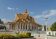 A wat (Khmer: វត្ត, vôtt [ʋɔət]; Lao: ວັດ, vat; Thai: วัด, RTGS: wat [wát]; Tai Lü: 「ᩅᨯ᩠ᨰ」(waD+Dha); Northern Thai: 「ᩅ᩠ᨯ᩶」 (w+Da2)) is a type of Buddhist temple and Brahminical temple in Cambodia, Laos, East Shan State, Yunnan and Thailand. The word wat is a thai word that was borrowed from Sanskrit vāṭa (Devanāgarī: वाट), meaning 'enclosure'.[1][2] The term has varying meanings in each region, sometimes referring to a specific type of government-recognised or large temple, other times referring to any Buddhist or Brahminical temple.
