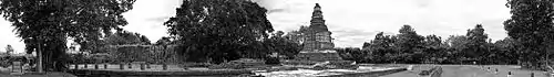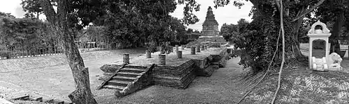 The primary architectural feature of the ruins is the large, mostly intact bell-shaped chedi on a high lotus-shaped base with torus molding. The base of the vihara is also preserved, including foundation stones for 16 pillars.